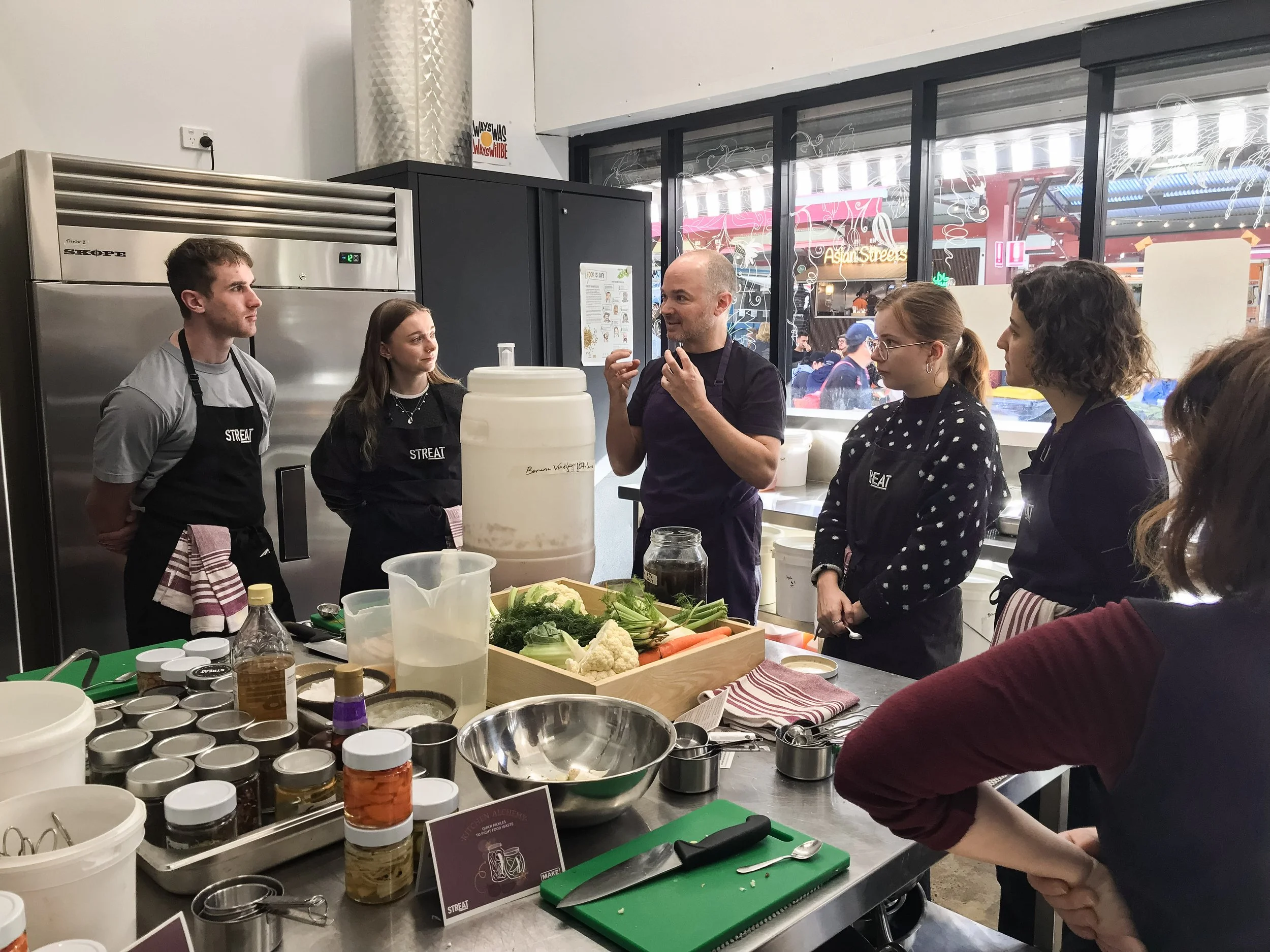 Crowd Sauce centred around the Queen Victoria Market at the Moving Feast Kitchen in the Purpose Precinct and was dedicated to diverting the market’s overripe & unsold produce from becoming waste and turning it into long shelf-life products and other delicious and nutritious food items. The Crowd Sauce project officially finished in late 2024, leaving with it more than 60 tested retail products, and the Moving Feast Kitchen is thriving because of the project. In addition to buying delicious retail products, you can also learn low-waste cooking and other circular practices as our workshops continue.